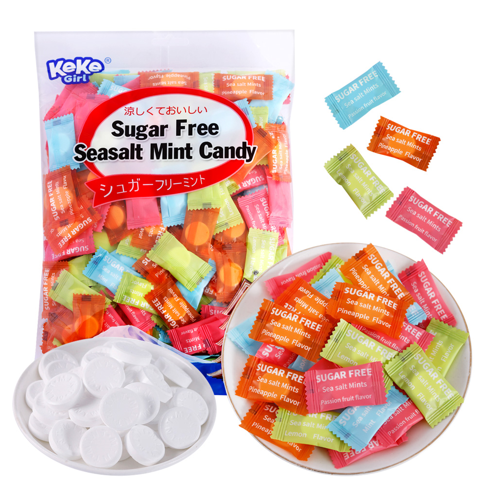 민트향, 파인애플향, 레몬향, 패션프루트향 4가지 혼합캔디 대용량 개별포장 제품이며 무설탕캔디 제품입니다. 약간의 천일염 함유로 민트의 상쾌함과 미량의 짠맛이 과일맛과 어우러져 자칫 느끼할 수 있는 맛을 최대한 배제하여 보통의 캔디 맛에서 느낄 수 없는 풍미를 맛보실 수 있습니다.